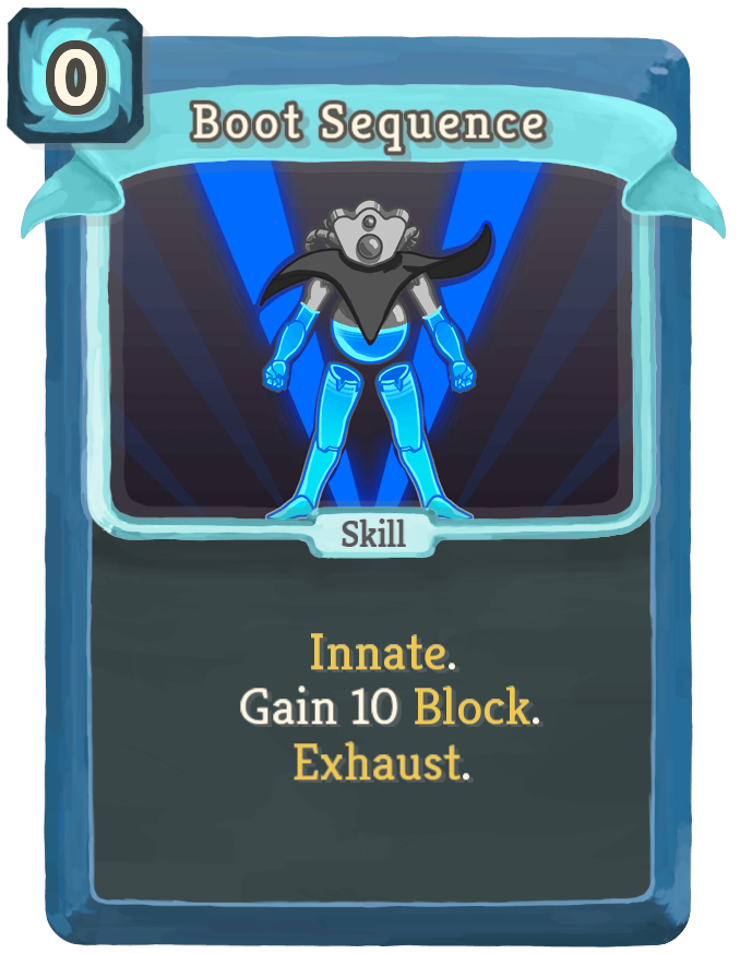 Boot Sequence costs 0 Energy, making it a good card to play on early turns while setting up other parts of the build. It Exhausts once used.