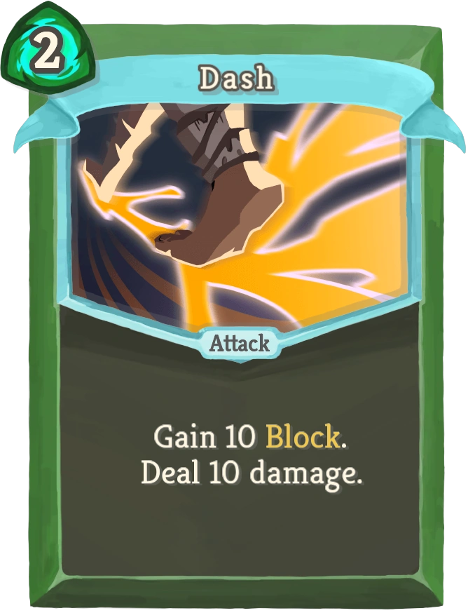 Dash has good Block along with damage. It can be especially useful in Act 1 to allow for damage and Block at the same time, useful due to most encounters having multiple enemies that can attack at the same time.