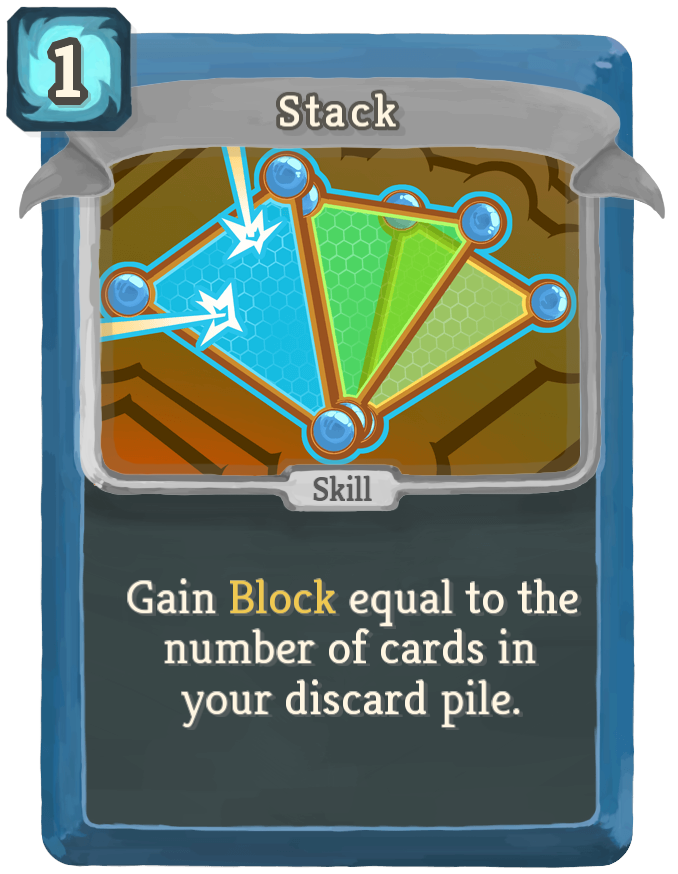 While Stack's effect scales with your deck's size, you don't need a huge deck to get big value. In a deck of only 20 cards, Stack has a 50% chance of providing 10 or more Block.